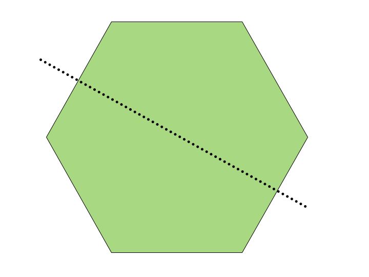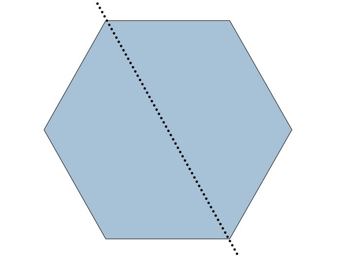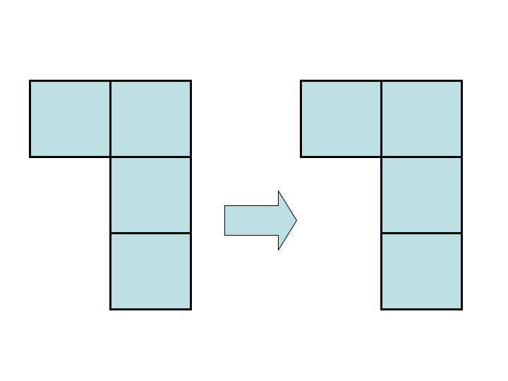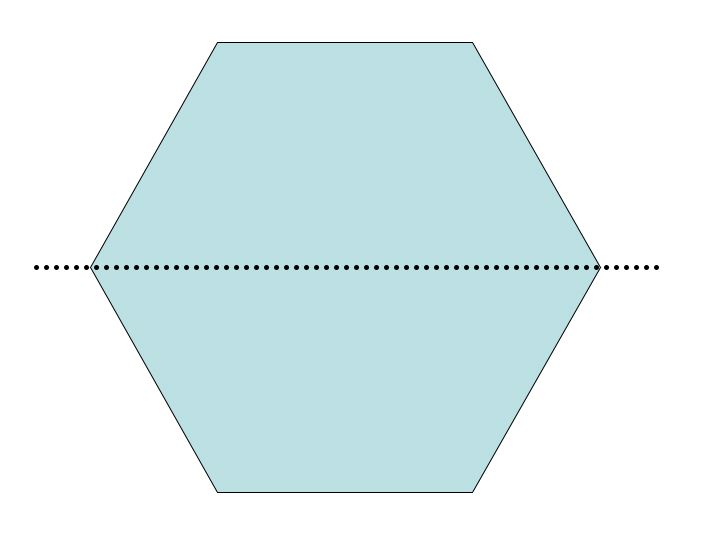 Tetris is a wonderful example of how to use translations, rotations and reflections of a preimage. The object of the game Tetris is to erase rows of squares. The only way to do this is to fill in all the squares with objects that are falling from the sky. This falling motion is a tranlation of the original object from the top. These objests are composed of 4 squares. There are 7 ways to compose 4 squares. Let's choose just one for now. Let's say that falling from the sky is the L shape. But maybe we only need to fill one square to get rid of a row. We want to turn this shape upside down. How do we do that? We reflect it over a horizontal line that runs at the base of the L. Since we only care about the tip of the L we could also rotate by 180 degrees. We are not done yet. Where on the Tetris board is the hole? As we rotate or reflect the object we might also have to translate the to the right or left so that the object lands in the hole. If a figure can be moved onto itself by a reflection then the figure has a line of symmetry. Lines of symmetry of a regular hexagon: